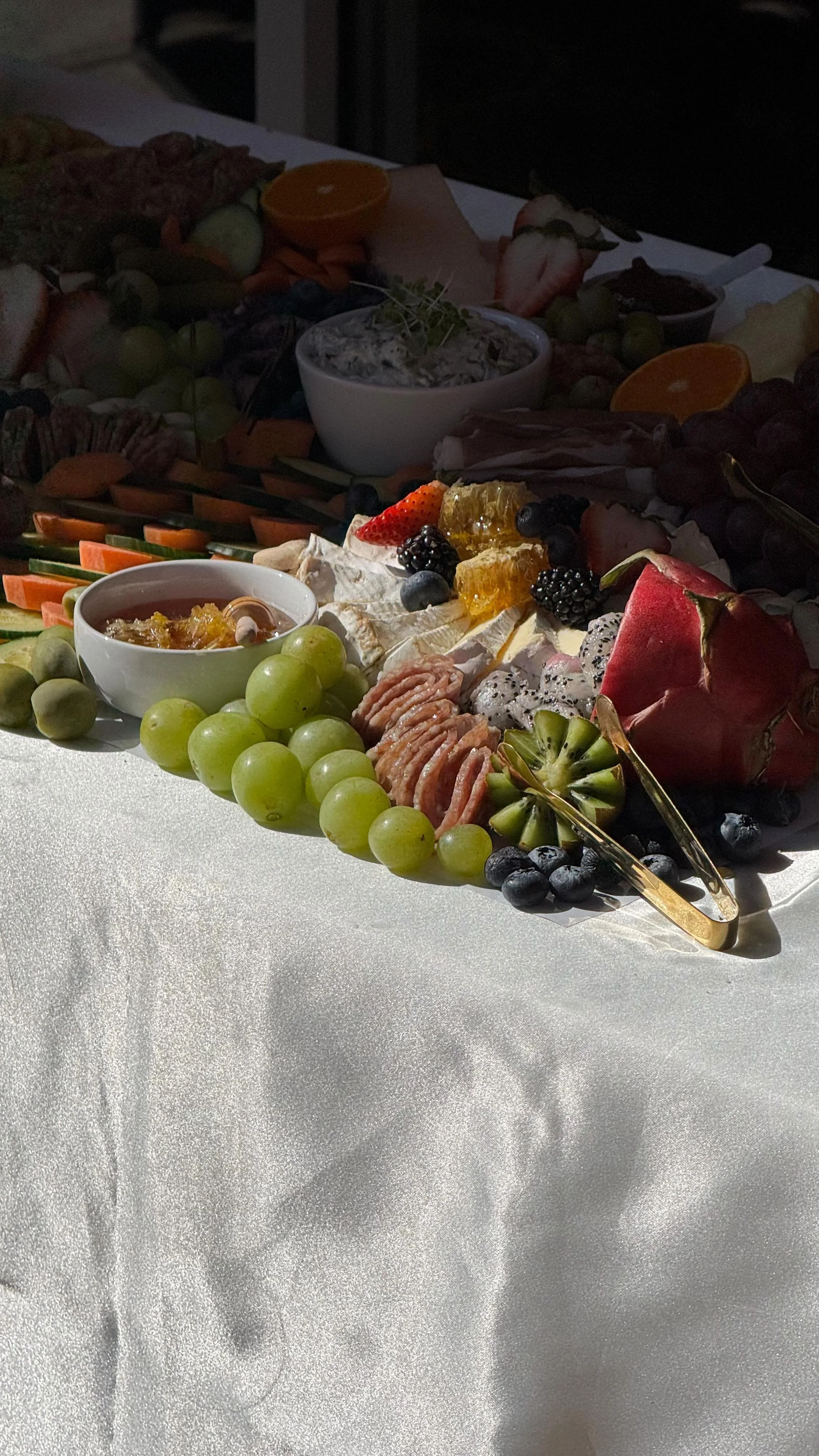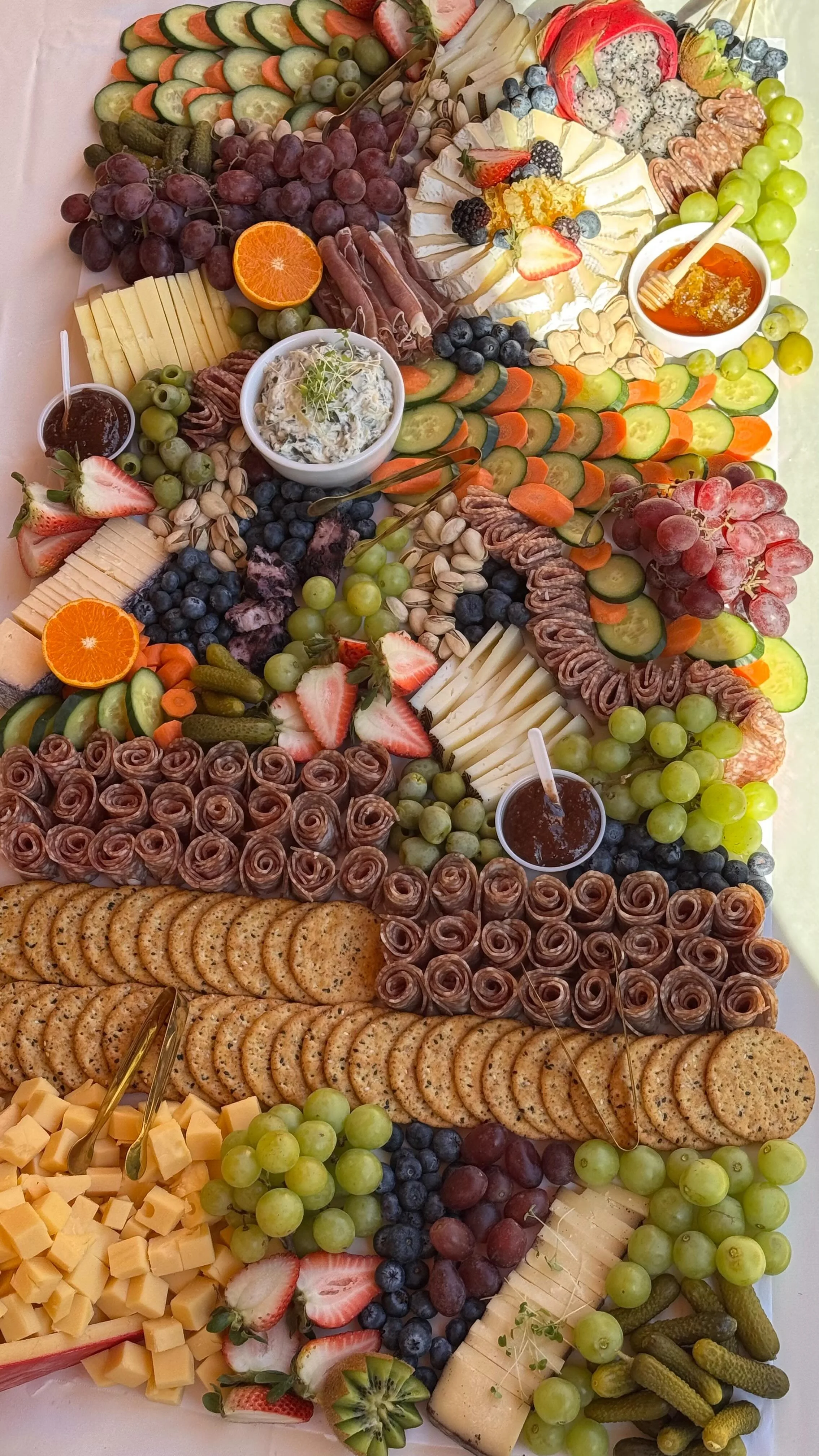 • Our signature in the charcuterie catering industry has become our food styling. Although we are most well-known for our grape towers, we have created spiraling cones of strawberries, waterfalls of grapes from a table, and towers of olives. If you can dream it, we can bring it to life.